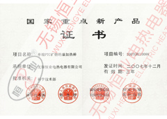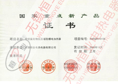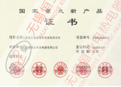 本公司的產(chǎn)品已全面通過電氣3C認(rèn)證、全國防爆電氣產(chǎn)品生產(chǎn)許可證認(rèn)證,且取得了國家防爆合格證、其中35項(xiàng)產(chǎn)品獲得國家專利證書、中國船用產(chǎn)品鑒定、英國勞式船級(jí)社認(rèn)證、江蘇省科技成果鑒定。產(chǎn)品榮獲:12項(xiàng)江蘇省高新技術(shù)產(chǎn)品,8項(xiàng)產(chǎn)品列入國家火炬計(jì)劃。2002年合金PTC管狀電熱元件獲國家創(chuàng)新基金65萬人民幣。2005年硅橡膠電熱帶獲得國家創(chuàng)新基金75萬元人民幣。所生產(chǎn)的產(chǎn)品被無錫市評(píng)為“