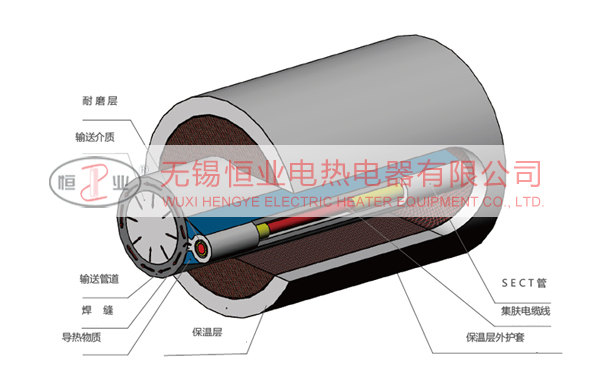 集膚電伴熱系統是基于電流的"集膚效應"和"接近效應"原理。當在碳鋼管中穿一根耐高溫絕緣導線與尾端相連,首端在碳鋼管和絕緣導線分別施以工頻交流電壓時,電流反向沿碳鋼管“內壁”產生焦耳熱和電磁渦流加熱,使碳鋼管升溫,而碳鋼管表面處于“絕緣”。然后將其焊在所需輸送管道上作為伴熱器材。